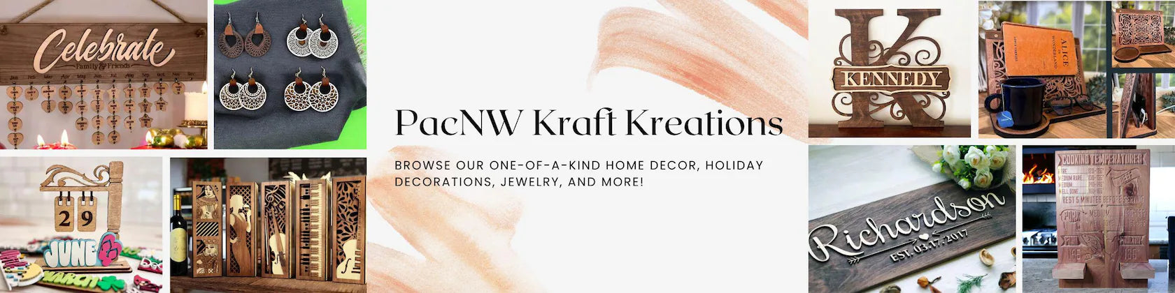 PacNW Kraft Kreations is a hub of creativity and craftsmanship, offering a unique blend of laser, CNC, and crochet gifts. Based in Hillsboro, Oregon, our shop on Etsy has garnered 2,200+ sales and maintains a stellar 5 out of 5 stars rating. We have now decided to branch out and create our own site.